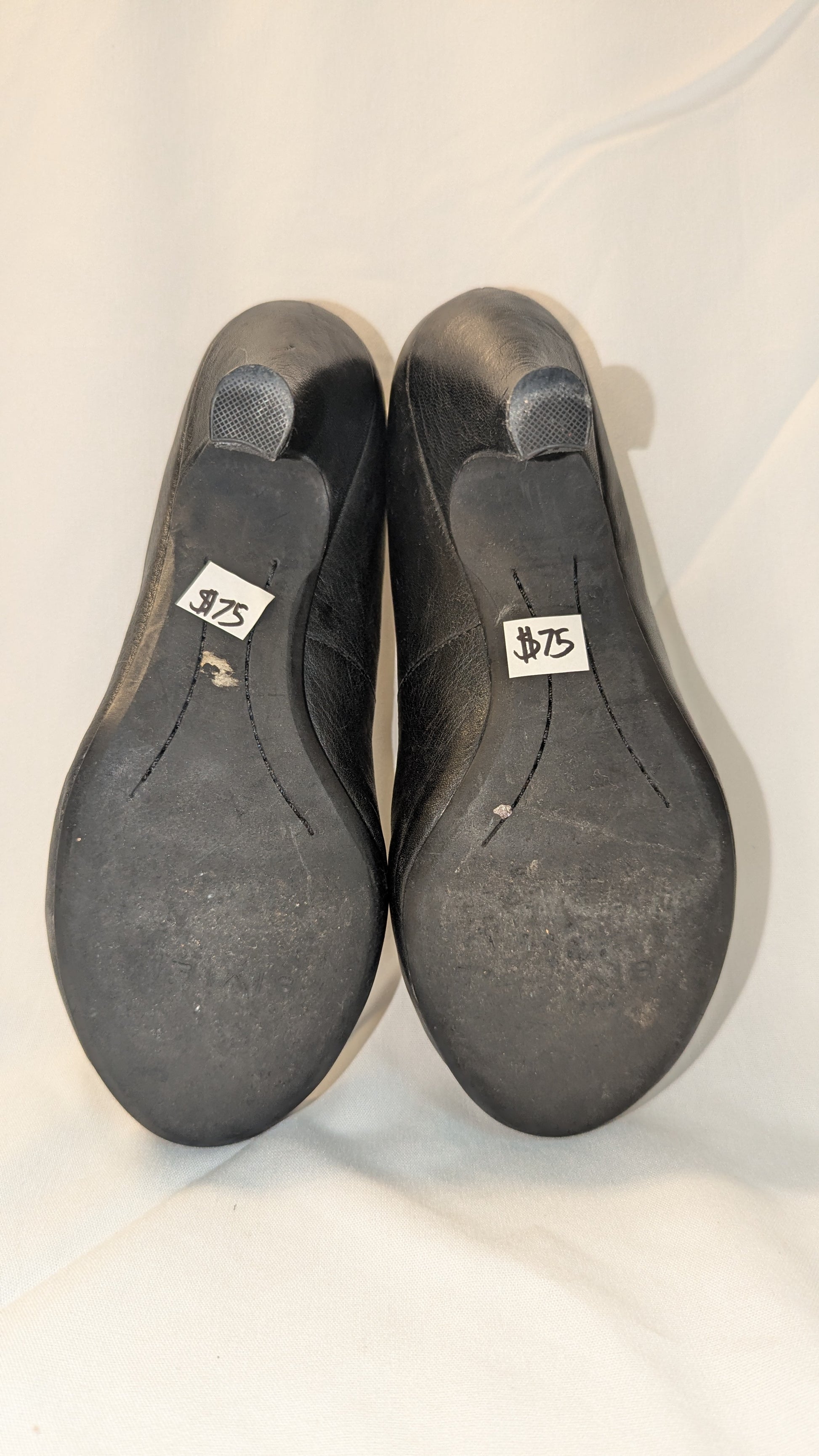 Sized 6.5, these pre-owned heels show signs of wear consistent with previous ownership. Despite this, they remain in wearable condition and full of character, making them a perfect choice for anyone who appreciates classic leather heels and values style with a story.