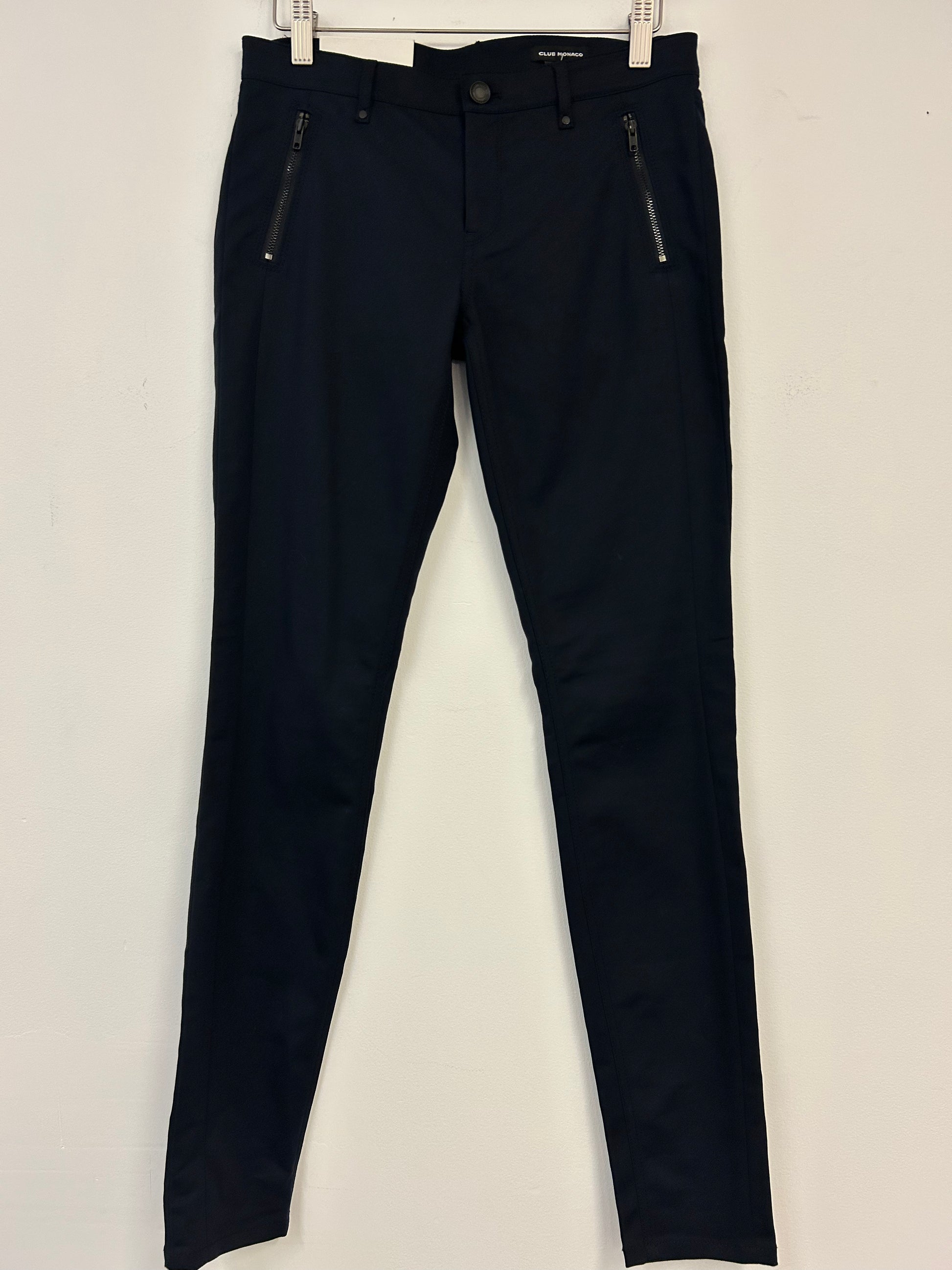 The new Club Monaco Nerice pant in blue offers a comfortable low-rise fit with a skinny leg cut, designed to flatter your figure effortlessly. Available in size 2, these pants are versatile for everyday wear while providing a stylish, confident look. Perfect for building a wardrobe that supports your personal style with ease.