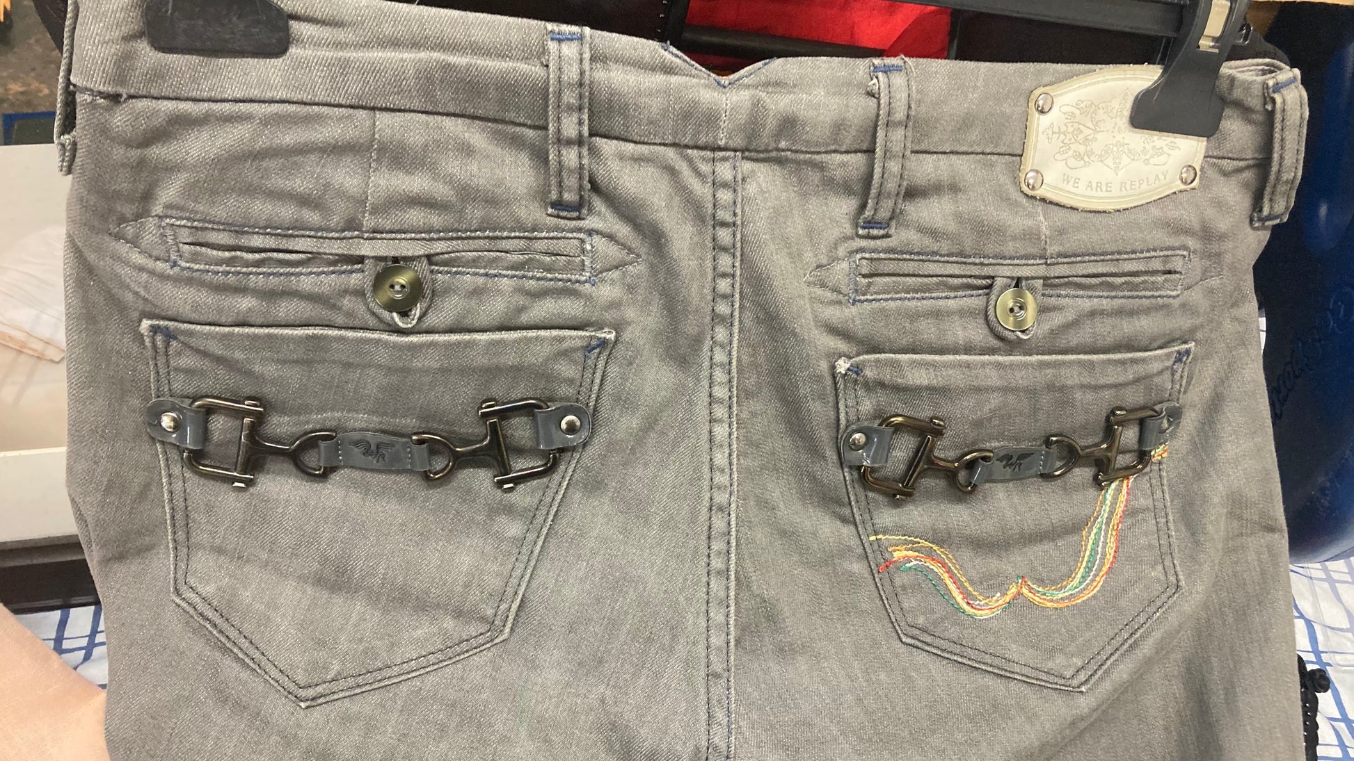 Elevate your everyday style with these Grey Jeans featuring distinctive back pocket detailing and sleek metal clasps that add a modern edge. The skinny fit offers a flattering silhouette, while clasps on the front pockets provide unique accents. Perfect for making a subtle statement, these jeans combine comfort with standout design for versatile wear.