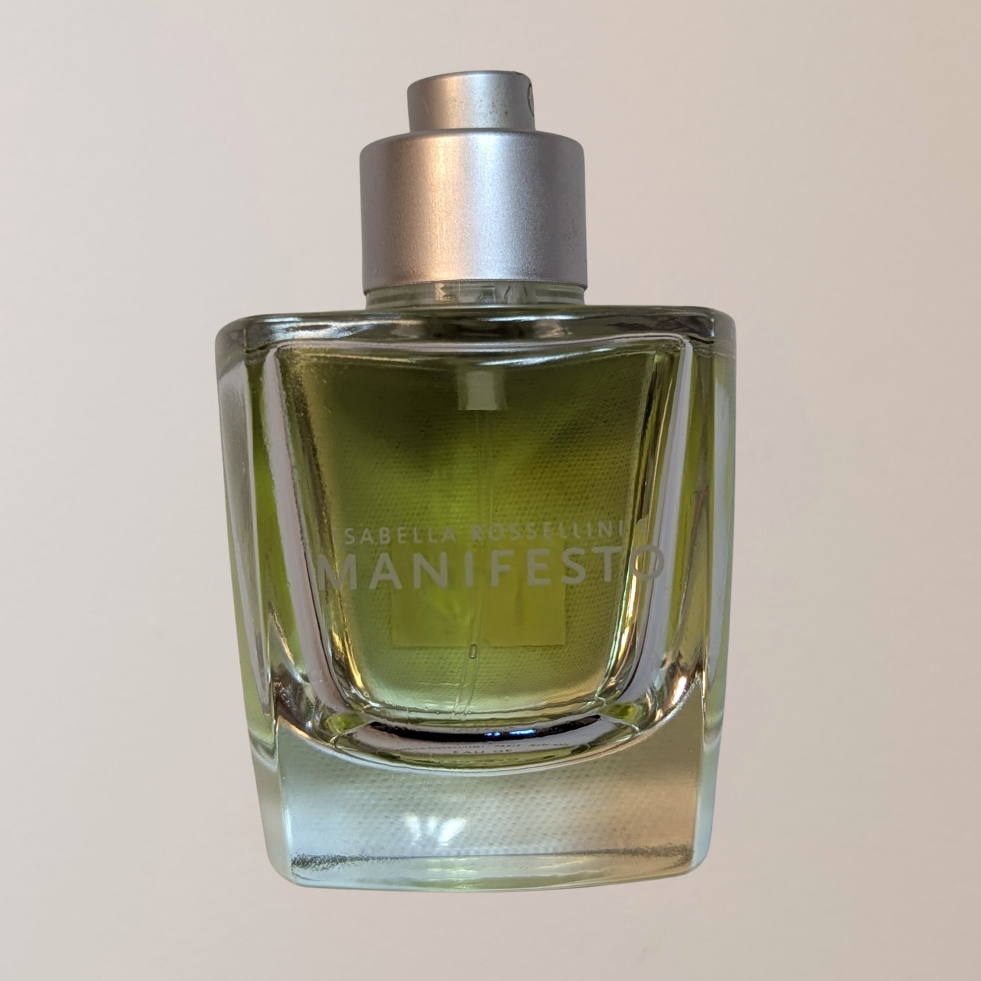 This preloved Manifesto fragrance by Isabella Rossellini is vibrant and sophisticated, blending fresh floral notes with hints of garden basil, bergamot, and pepper. Its aromatic complexity gives it a lively and elegant character, making it a unique secondhand perfume that feels personal and expressive — perfect for adding a signature touch to any occasion.