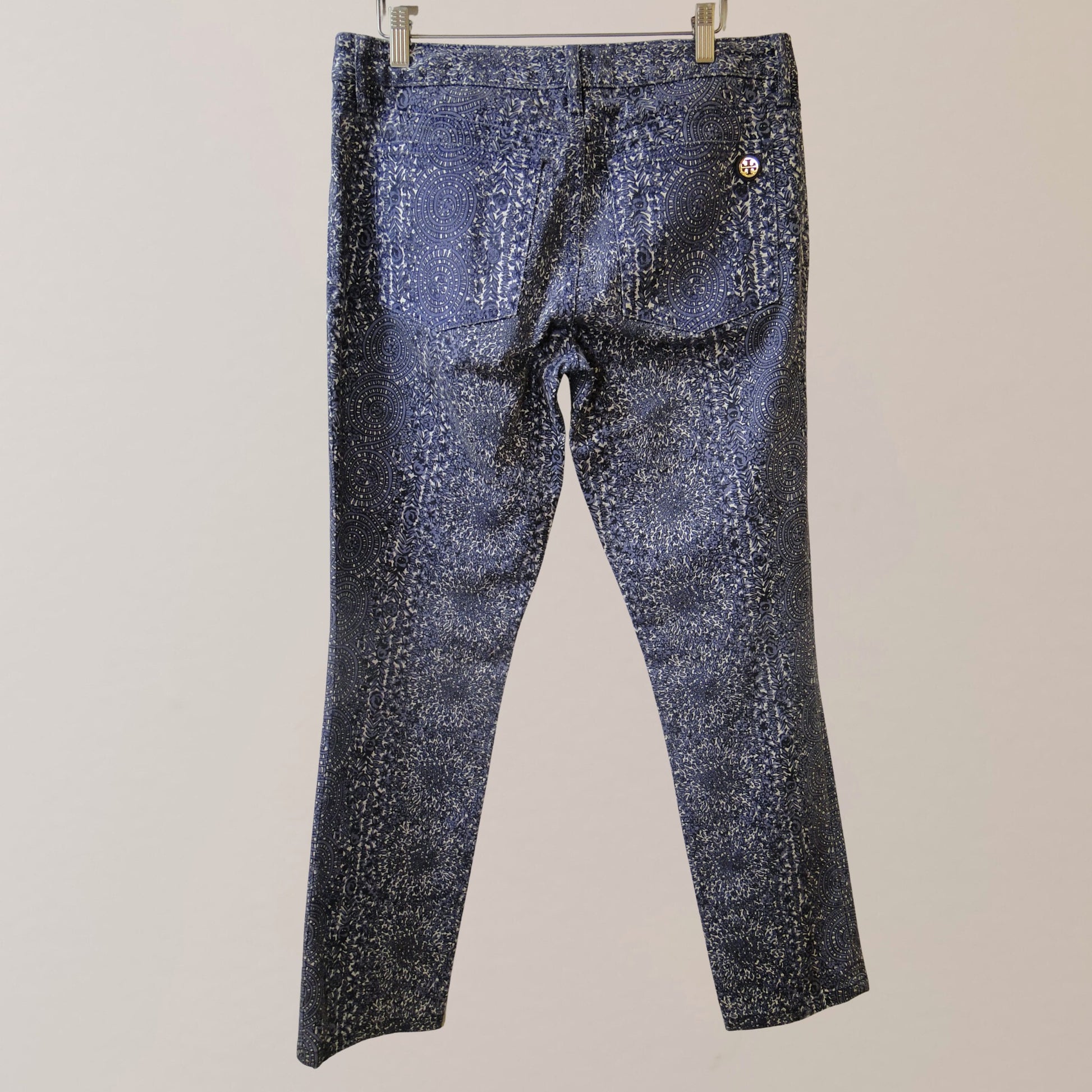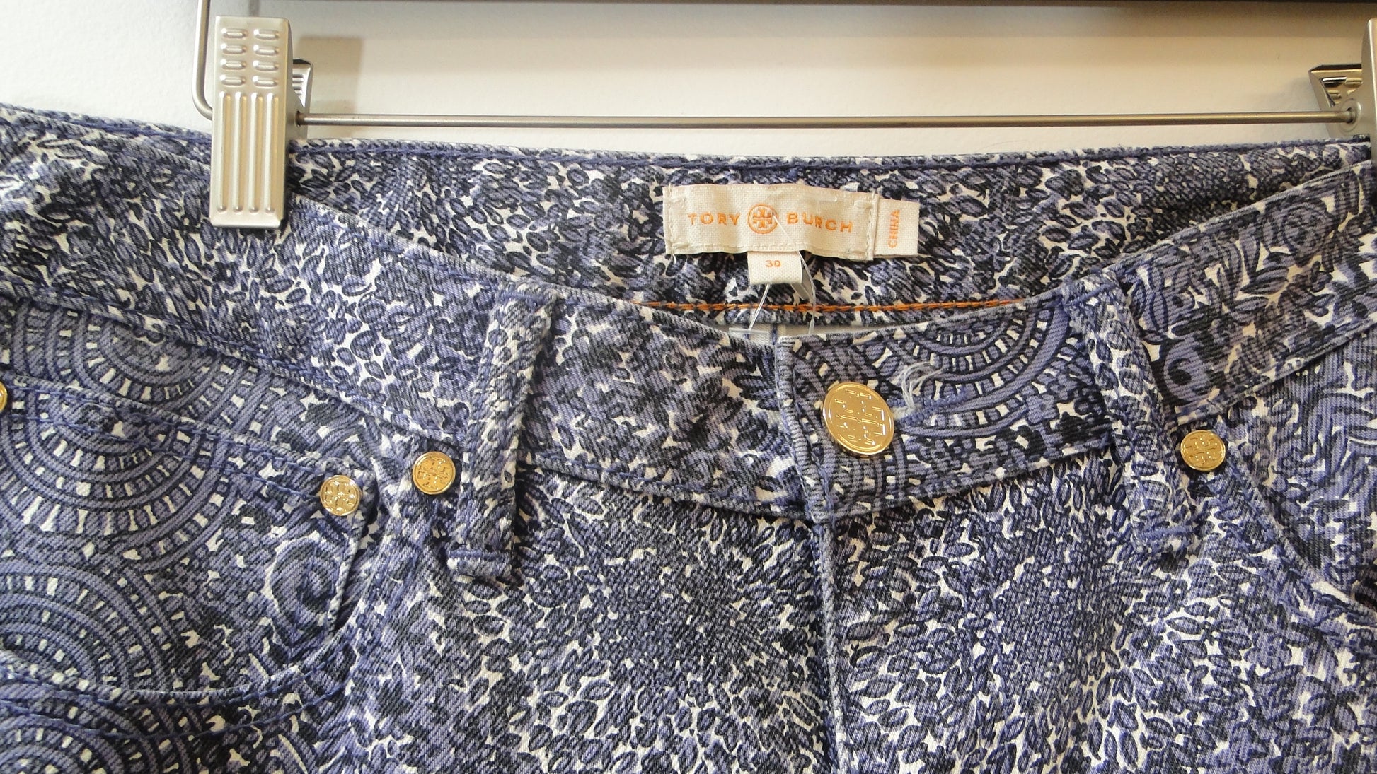 Tory Burch purple floral super-skinny jeans — size 30. A playful twist on a classic skinny jean, these Tory Burch denim pants feel like a little secret in your wardrobe: rich purple, covered in a subtle floral print that peeks through as you move. The super-skinny cut and medium rise give a sleek, modern line that works from day to night—pair with a simple tee for coffee or a silky blouse for an evening out. Because the print is the star, everything else can stay clean and minimal, letting the jeans carry the look.